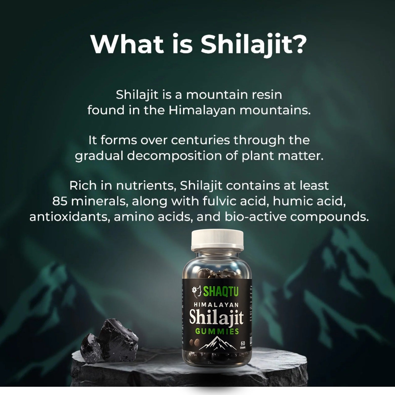 Energize your body and mind with Shaqtu Shilajit Gummies. Each bottle contains 60 delicious gummies, providing a full 30-day supply with just 2 gummies daily. Perfect for boosting stamina, immunity, and overall wellness naturally.